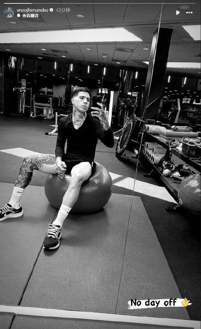 Chelsea midfielder Enzo posted a photo of himself working out on social media with the caption: "No days off." And with an "OK" emoji.